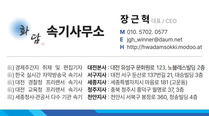 대전 · 세종 · 청주 · 천안 등 충청권 대표 속기사무소입니다. 단순 타이핑 문서는 공증이 불가해 공인 자격을 갖추고 있는지 확인하세요.